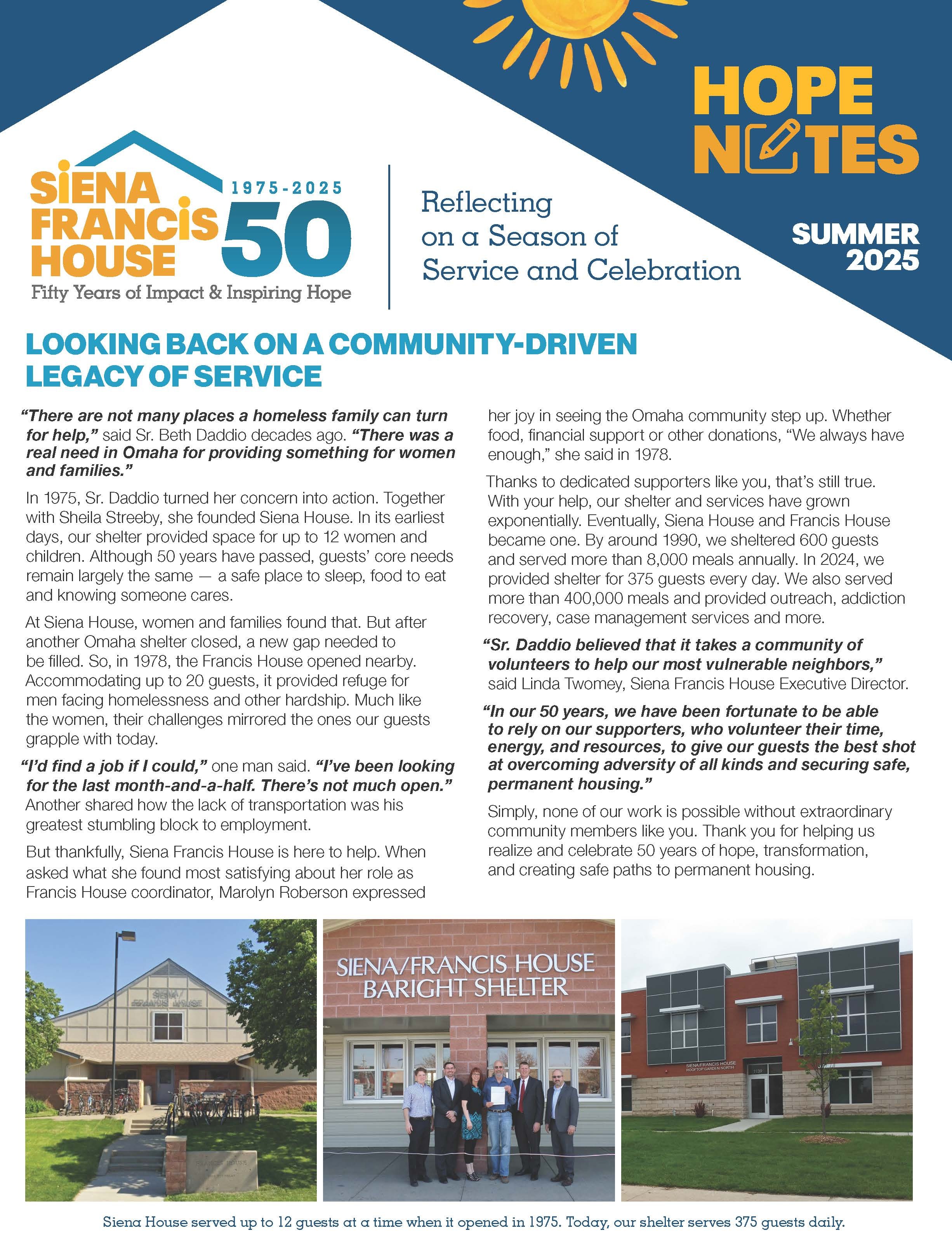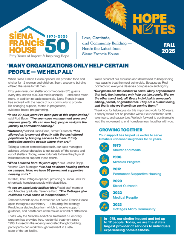 Your partnership with Siena Francis House brings life-changing support to our guests and strengthens our entire community—thank you for helping us end homelessness.